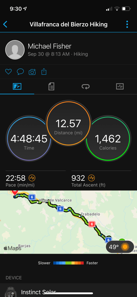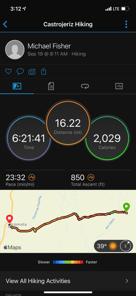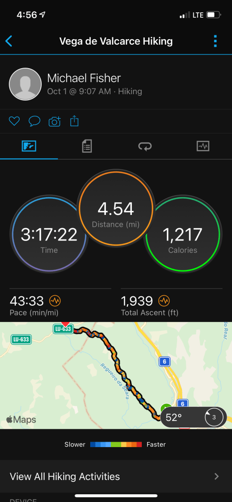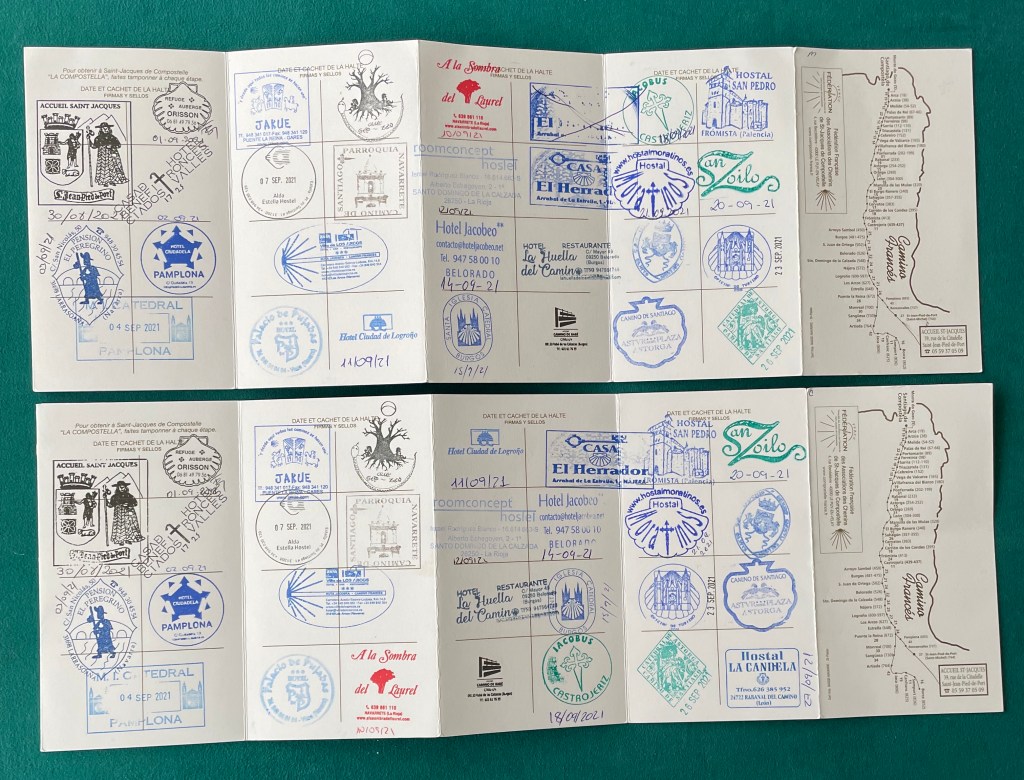 Almost there! We hear these same words from everyone we talk to. We are all exhausted but still excited to get to the end. We’ve been on this journey since September 1. Our blisters have healed, and turned to calluses; our aches have increased or miraculously disappeared; our socks, pants, shorts and shirts are soiled and torn; our spirits have dragged at times through the rain and rougher climbs but have been lifted by cheery conversation with new found friends. The walk will soon be over but the experience and memories will stay with us forever.